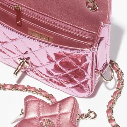 メタリック ミラー カーフスキン & メタリック ラムスキンゴールドピンクパープルサイズ12.5 × 19 × 5 cm