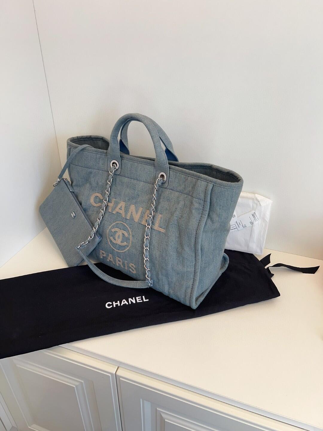 CHANEL シャネル 23S ミディアム ショッピングバッグ デニム ライトブルー AS3351