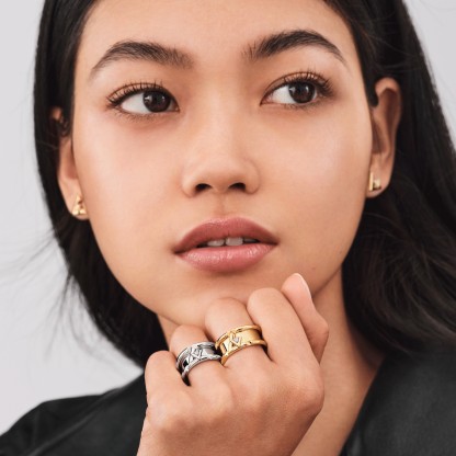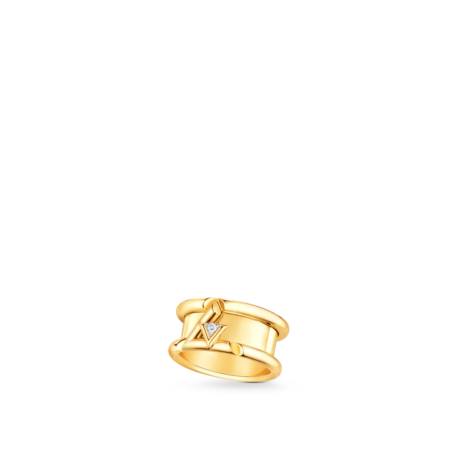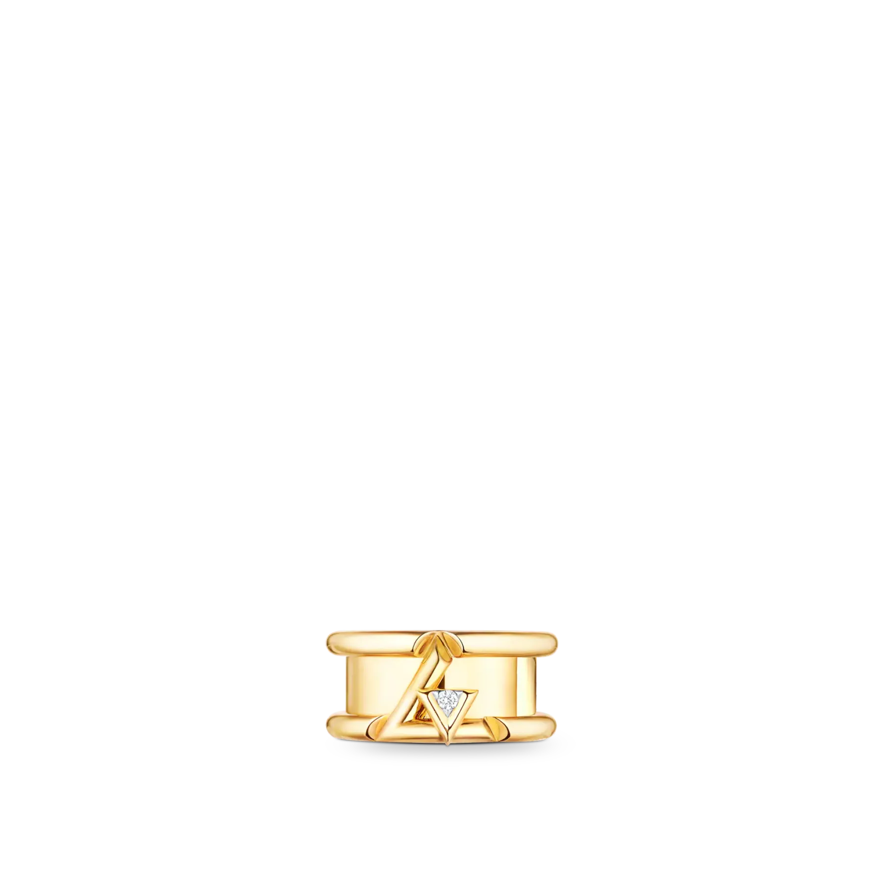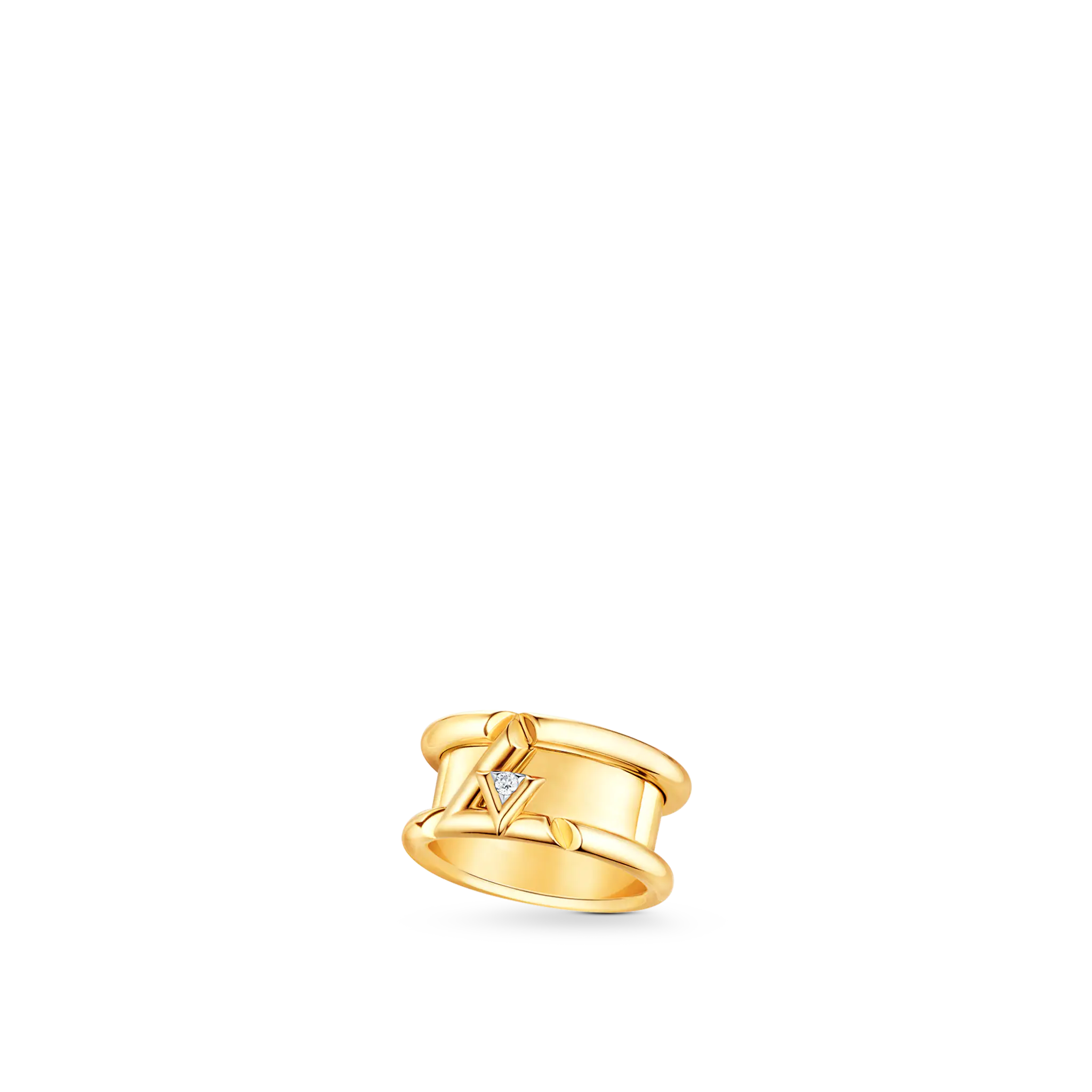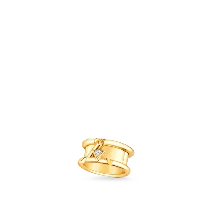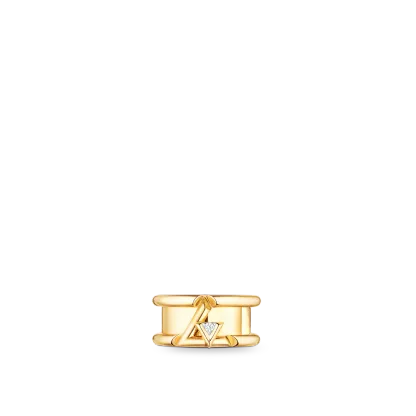 18KゴールドのLVボルトバンドリングは、LVロゴのエネルギーとリズムを刺激するように設計されています。 まばゆいばかりのダイヤモンドは小さなV字型に埋め込まれ、L字型の抱擁に安定して配置されています。