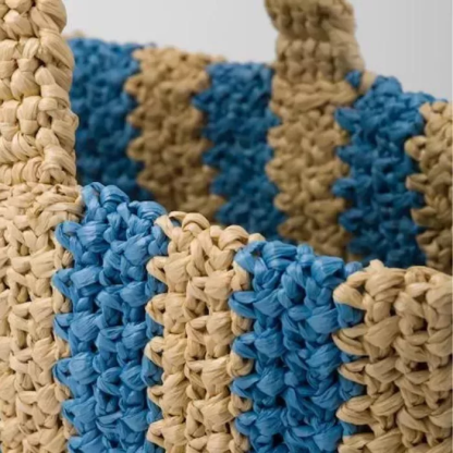 | 素材風合い | 丁寧に編み込んだラフィア素材を使用しています。軽やかで柔らかい風合いが特徴です。 |